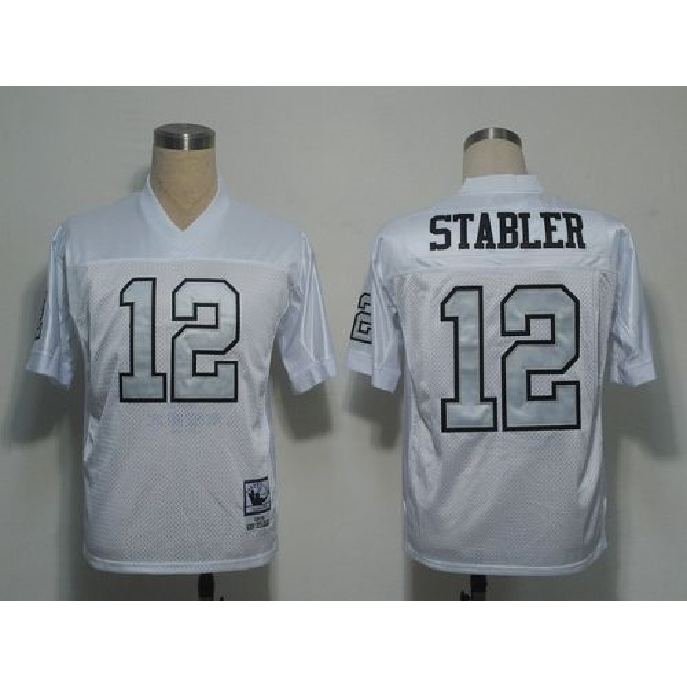 Mitchell and Ness Raiders #12 Kenny Stabler White Silver No. Stitched NFL Jersey