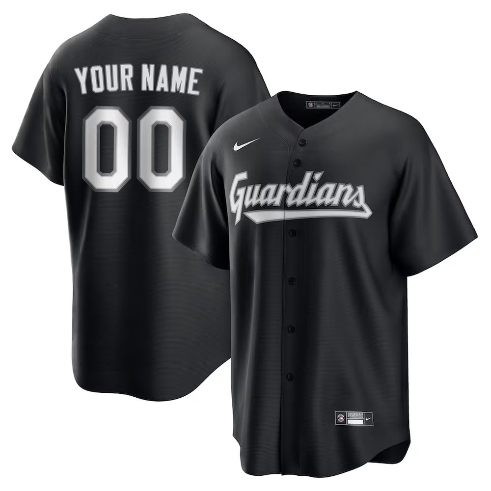 Men's Cleveland Guardians Nike Custom Black Lights Out Replica Jersey