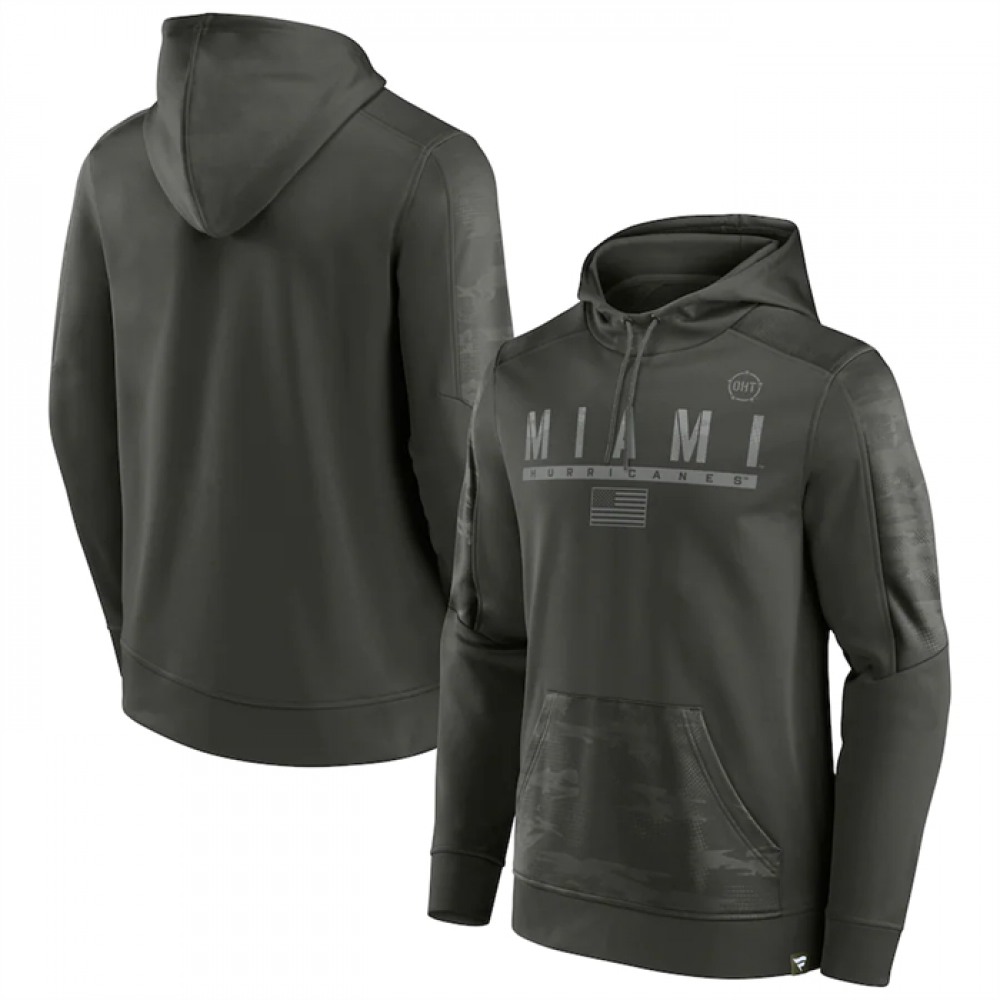 Men's Miami Hurricanes Olive OHT Military Appreciation Guardian Pullover Hoodie