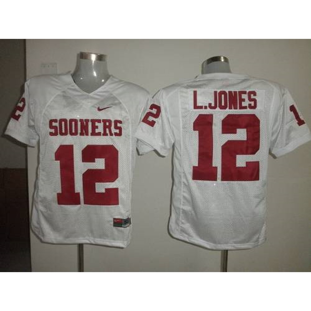 Sooners #12 Landy Jones White Stitched NCAA Jersey