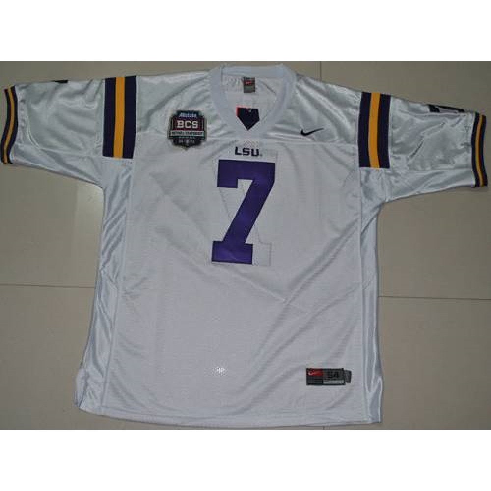 LSU Tigers #7 Tyrann Mathieu White 2012 BCS Championship Patch Stitched NCAA Jersey