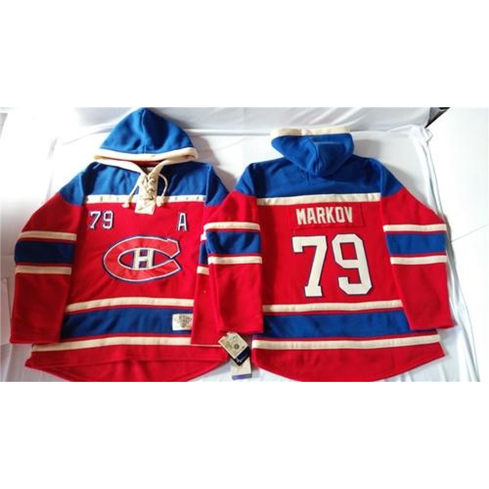 Canadiens #79 Andrei Markov Red Sawyer Hooded Sweatshirt Stitched NHL Jersey