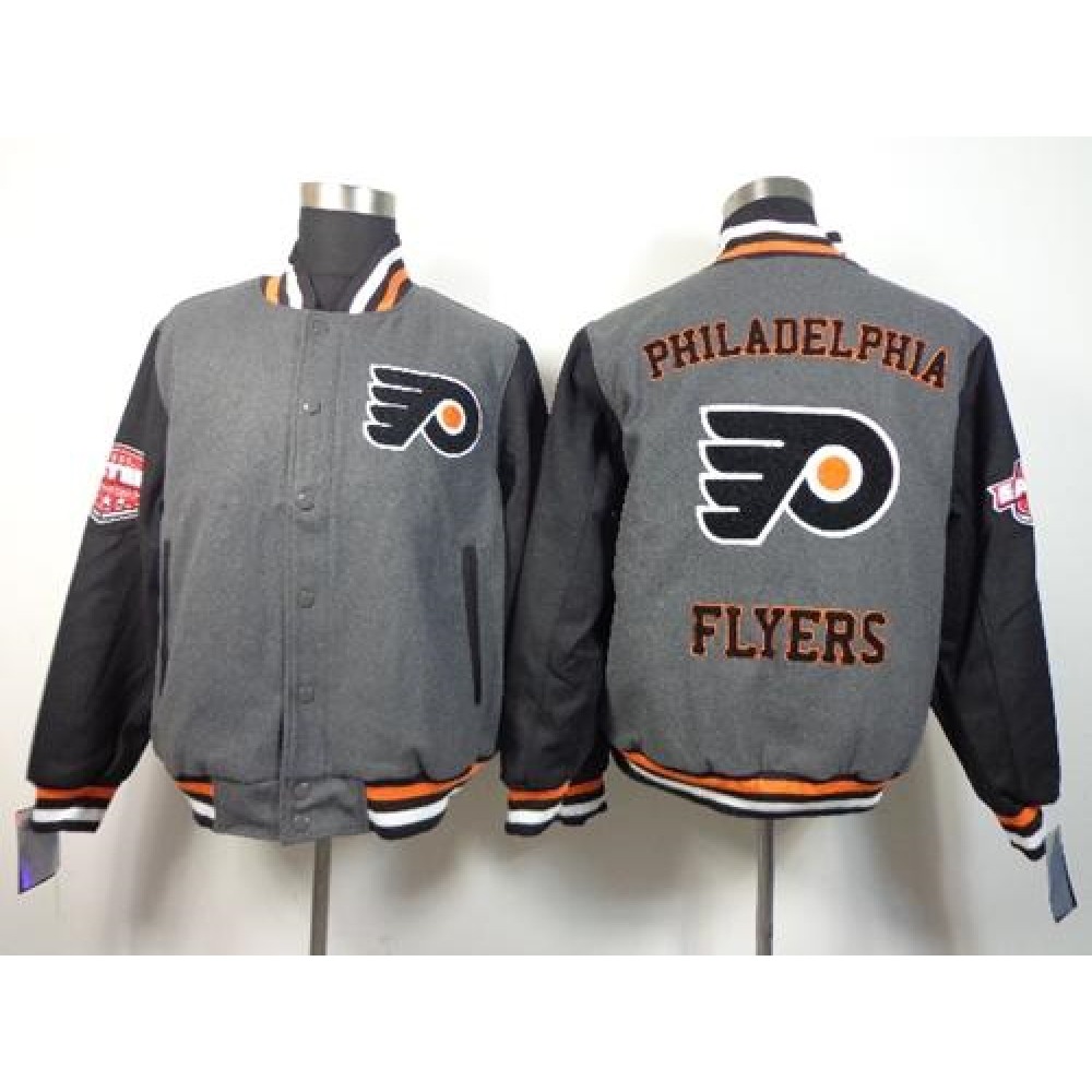 Philadelphia Flyers Blank Satin Button-Up Grey NHL Jacket