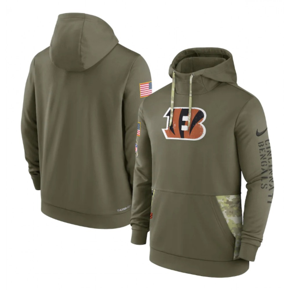 Men's Cincinnati Bengals 2022 Olive Salute to Service Therma Performance Pullover Hoodie