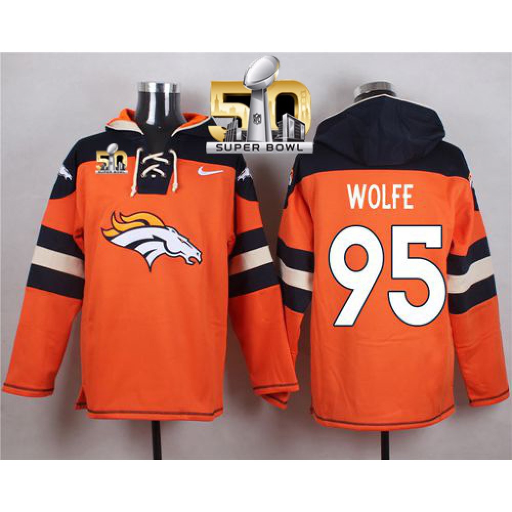 Nike Broncos #95 Derek Wolfe Orange Super Bowl 50 Player Pullover NFL Hoodie