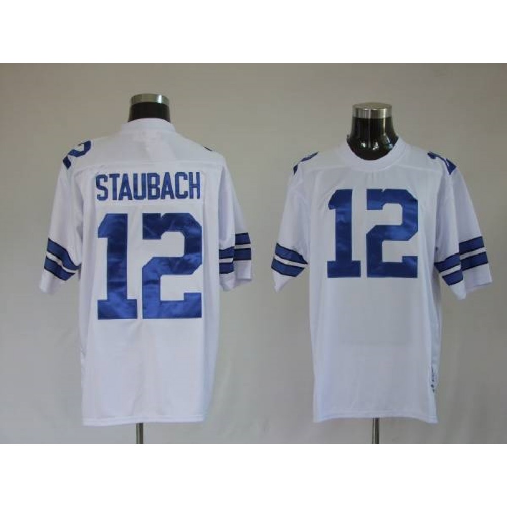 Mitchell & Ness Cowboys #12 Roger Staubach White Stitched Throwback NFL Jersey