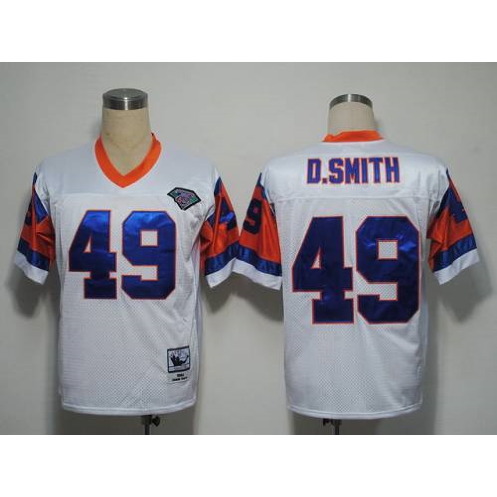 Mitchel and Ness Broncos #49 Dennis Smith White With 75 Anniversary Patch Stitched Throwback NFL Jersey