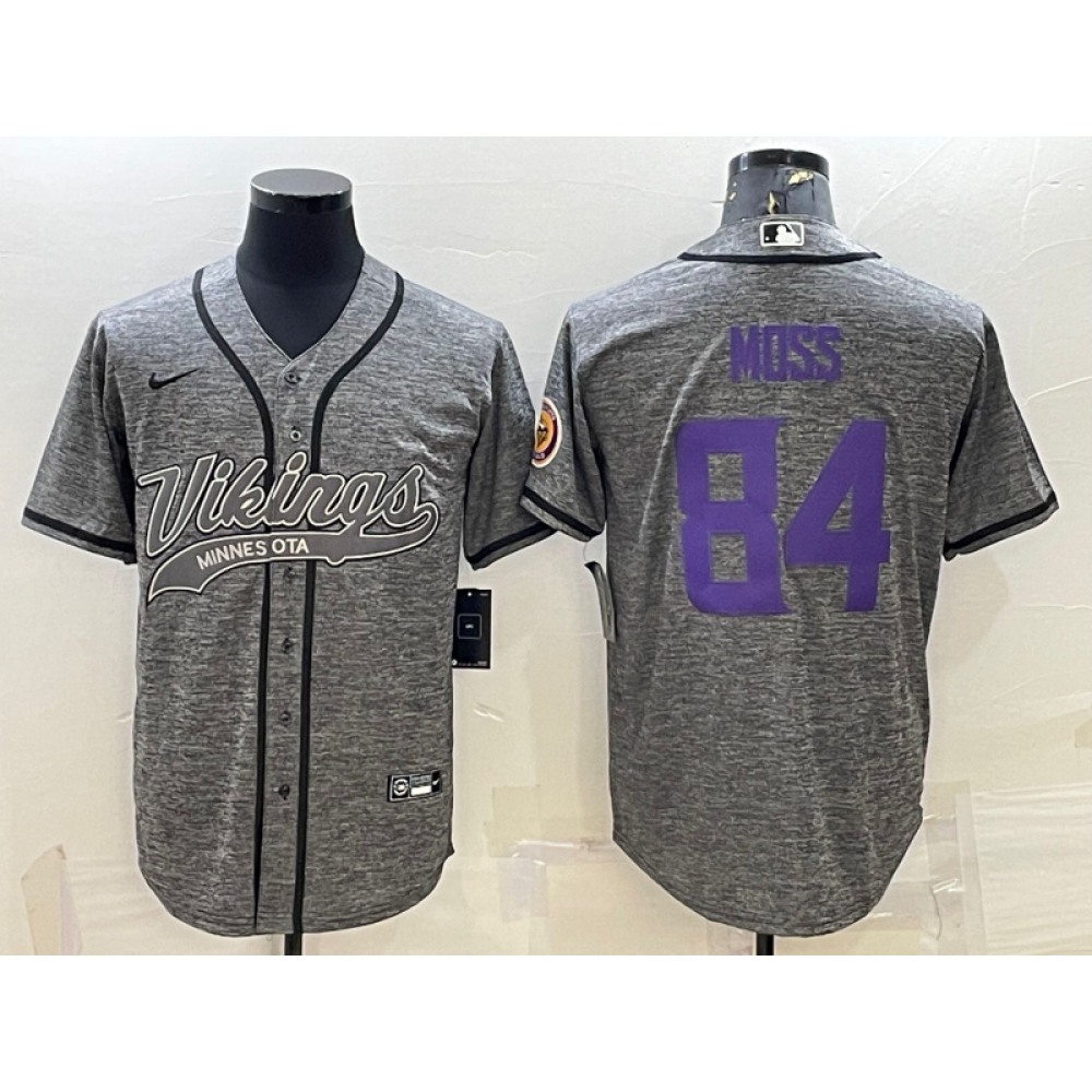 Men's Minnesota Vikings #84 Randy Moss Grey With Patch Cool Base Stitched Baseball Jersey