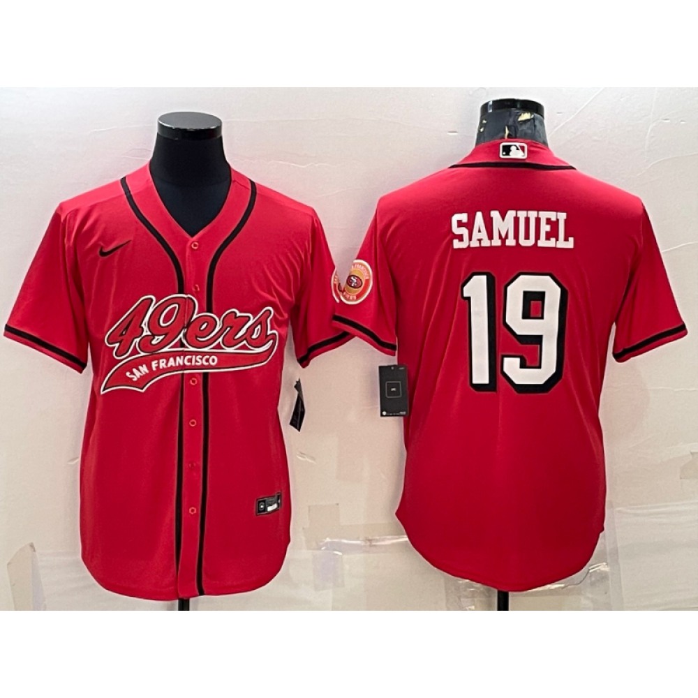 Men's San Francisco 49ers #19 Deebo Samuel New Red With Patch Cool Base Stitched Baseball Jersey