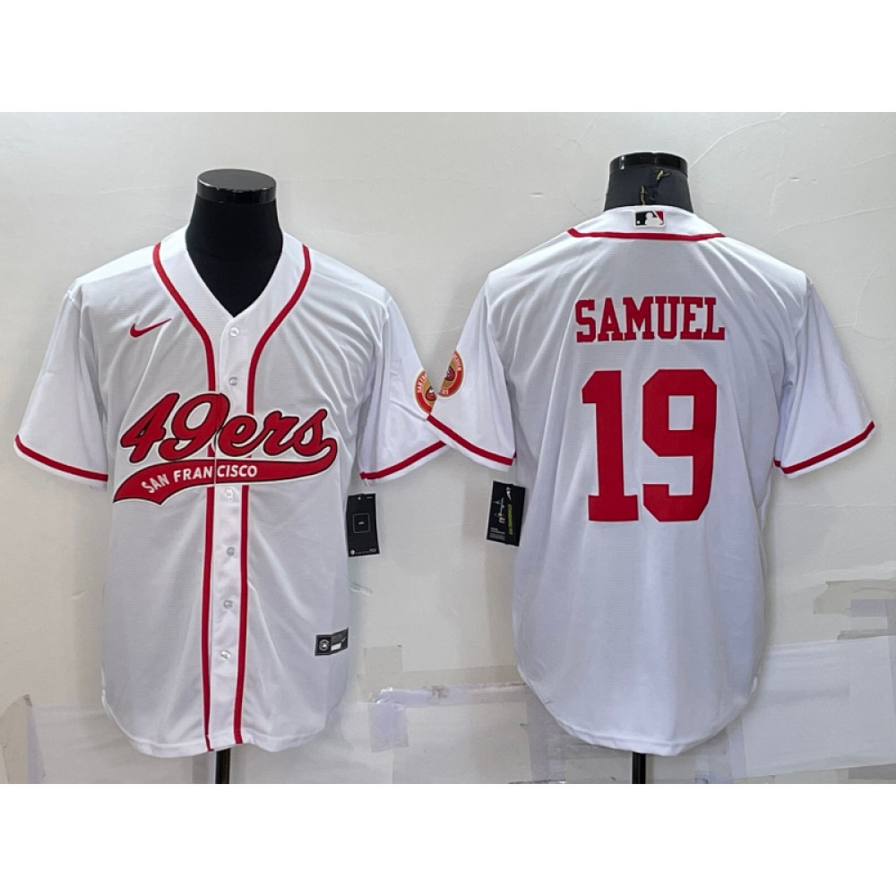 Men's San Francisco 49ers #19 Deebo Samuel White With Patch Cool Base Stitched Baseball Jersey