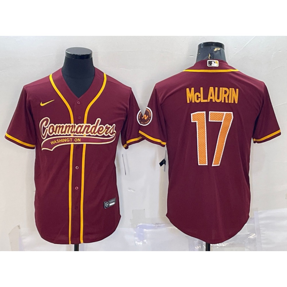 Men's Washington Commanders #17 Terry McLaurin Burgundy With Patch Cool Base Stitched Baseball Jersey