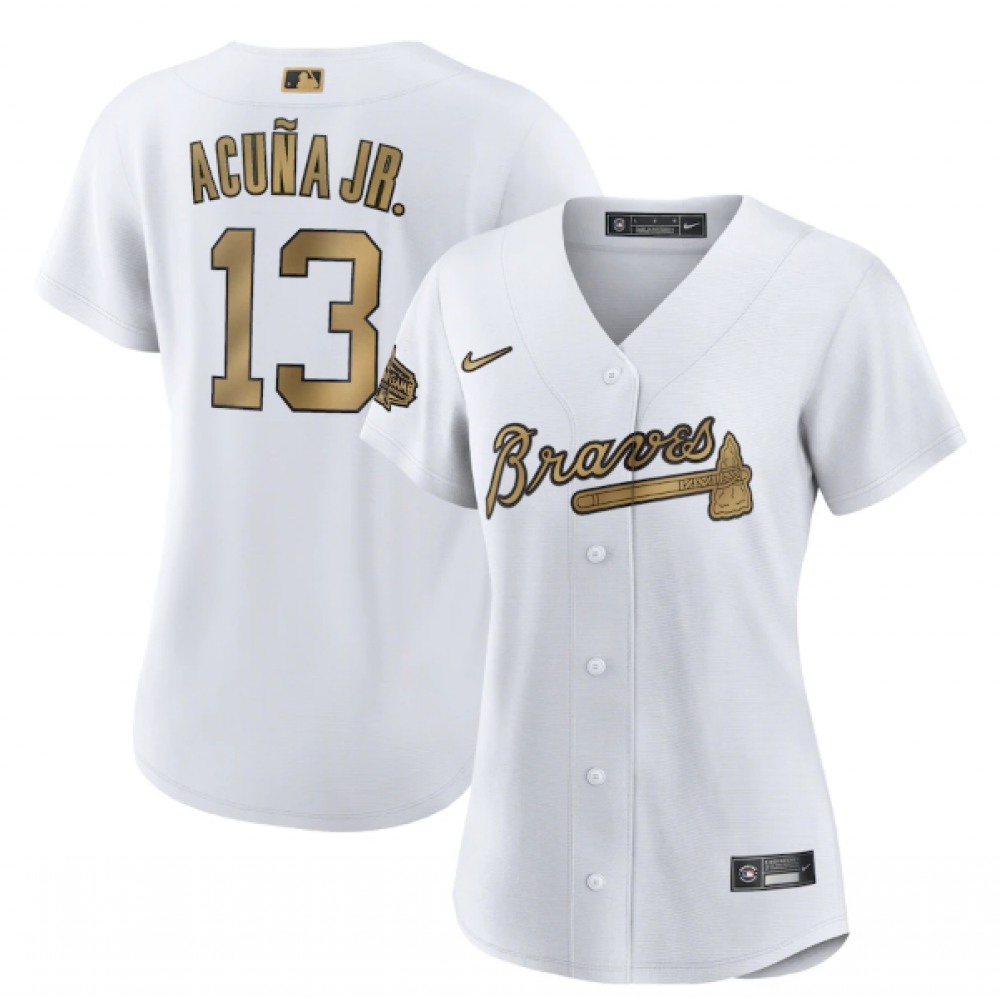 Women's Atlanta Braves #13 Ronald Acuna Jr. 2022 All-Star White Stitched Baseball Jersey(Run Small)