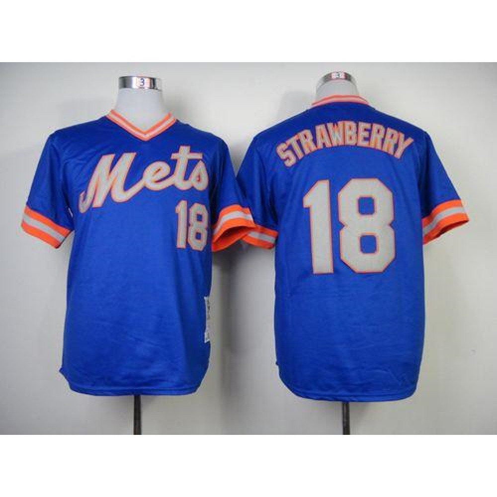 Mitchell and Ness 1983 Mets #18 Darryl Strawberry Blue Throwback Stitched MLB Jersey