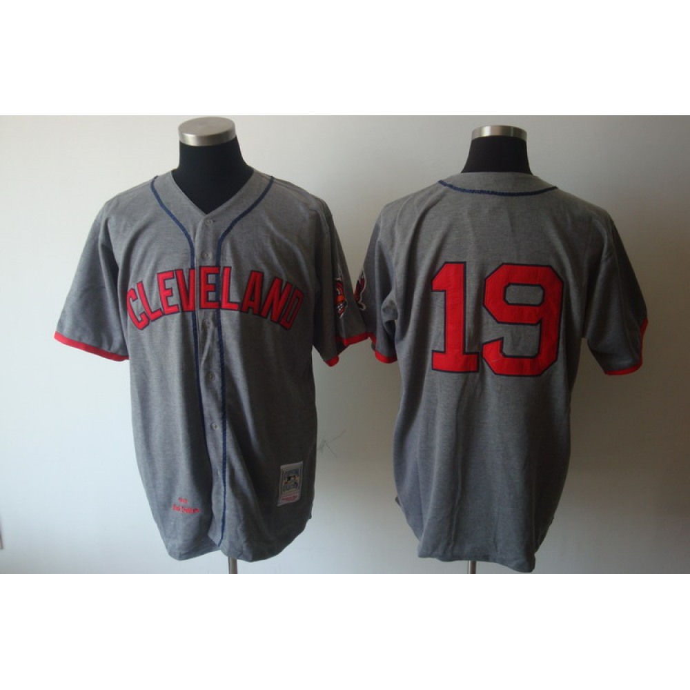 Mitchell and Ness indians #19 Bob Feller Grey Stitched Throwback MLB Jersey