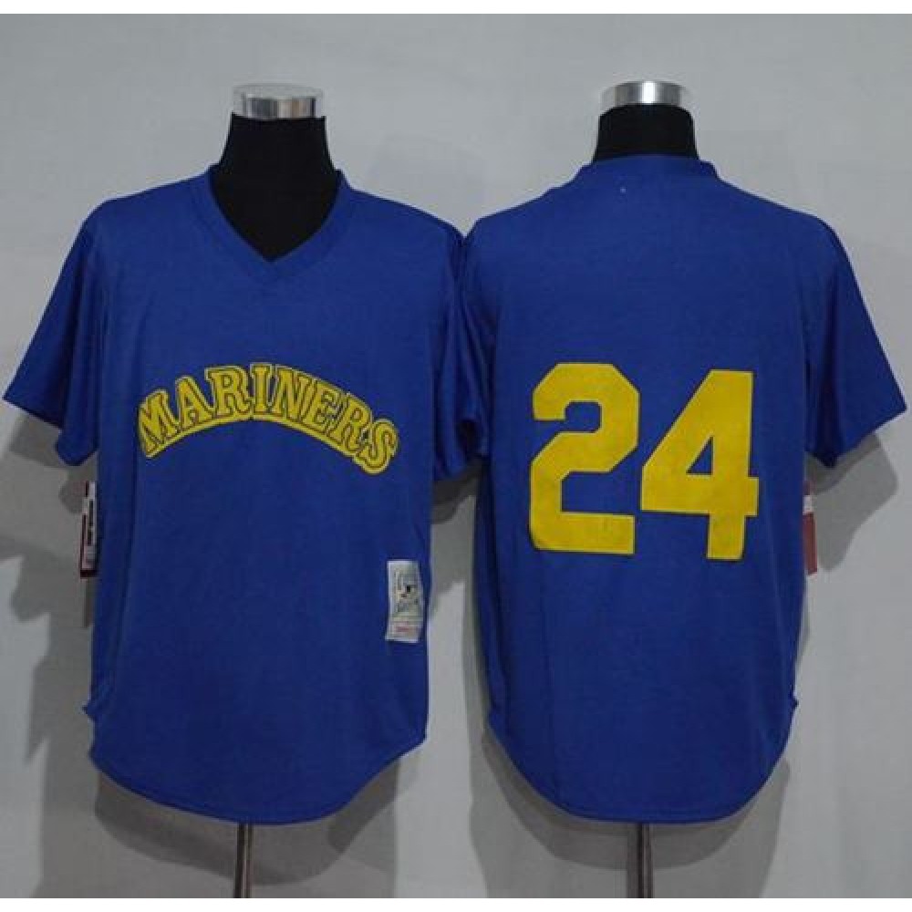 Mitchell And Ness 1991 Mariners #24 Ken Griffey Light Blue Throwback Stitched MLB Jersey