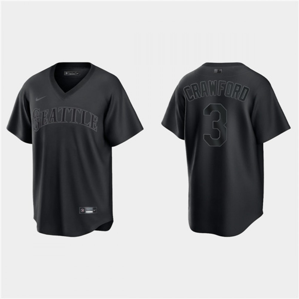 Men's Seattle Mariners #3 J.P. Crawford Black Pitch Black Fashion Replica Stitched Jersey