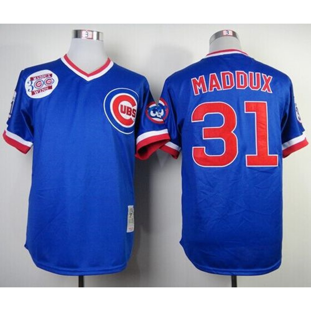 Mitchell and Ness Cubs #31 Greg Maddux Blue Throwback Stitched MLB Jersey