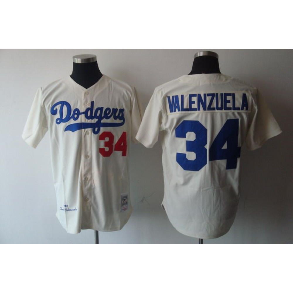 Mitchell and Ness Dodgers #34 Fernando Valenzuela Stitched Cream MLB Jersey