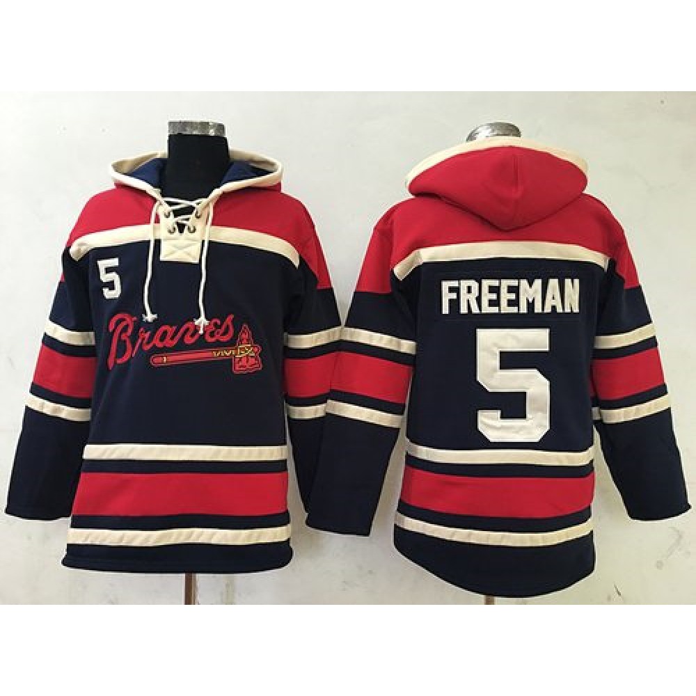 Braves #5 Freddie Freeman Navy Blue Sawyer Hooded Sweatshirt MLB Hoodie