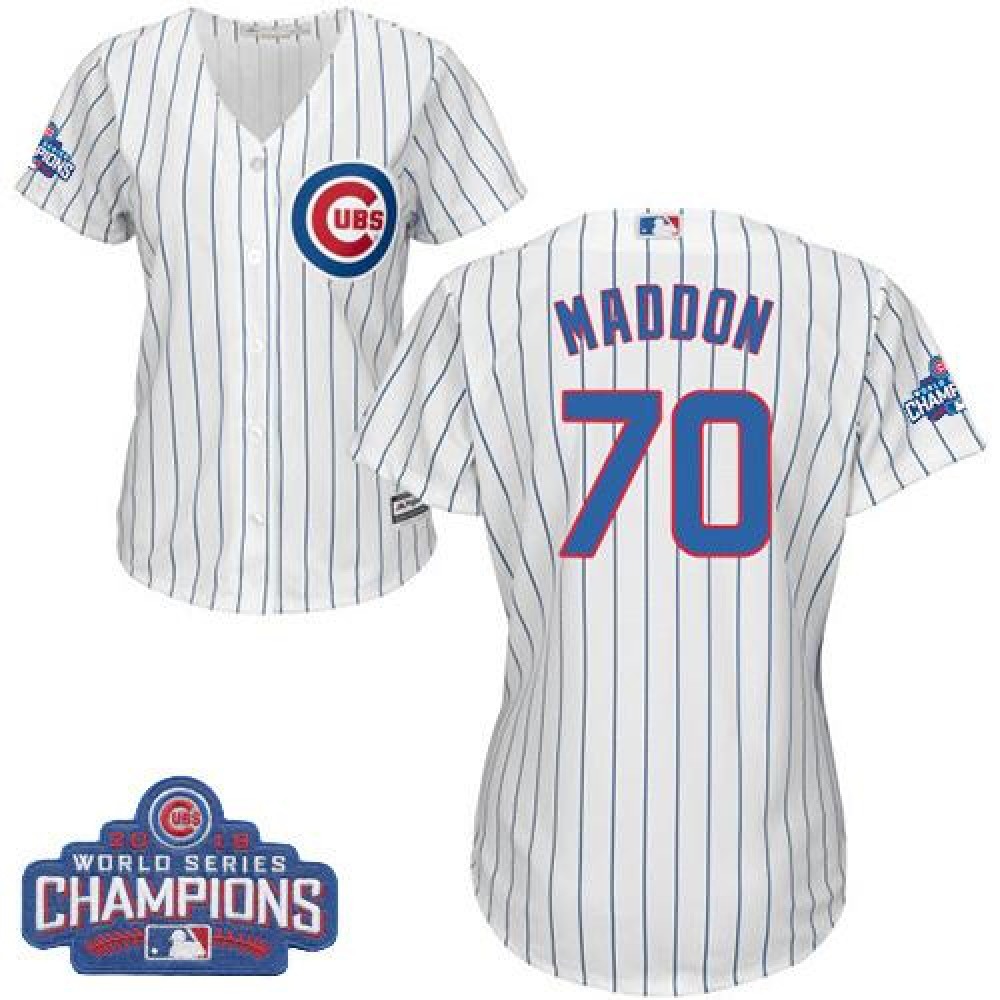 Cubs #70 Joe Maddon White(Blue Strip) Home 2016 World Series Champions Women's Stitched MLB Jersey