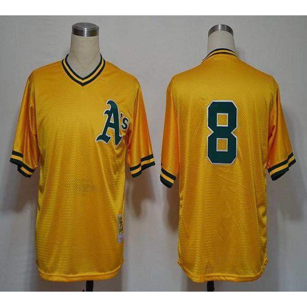 Mitchell And Ness Athletics #8 Joe Morgan Yellow Stitched MLB Jersey