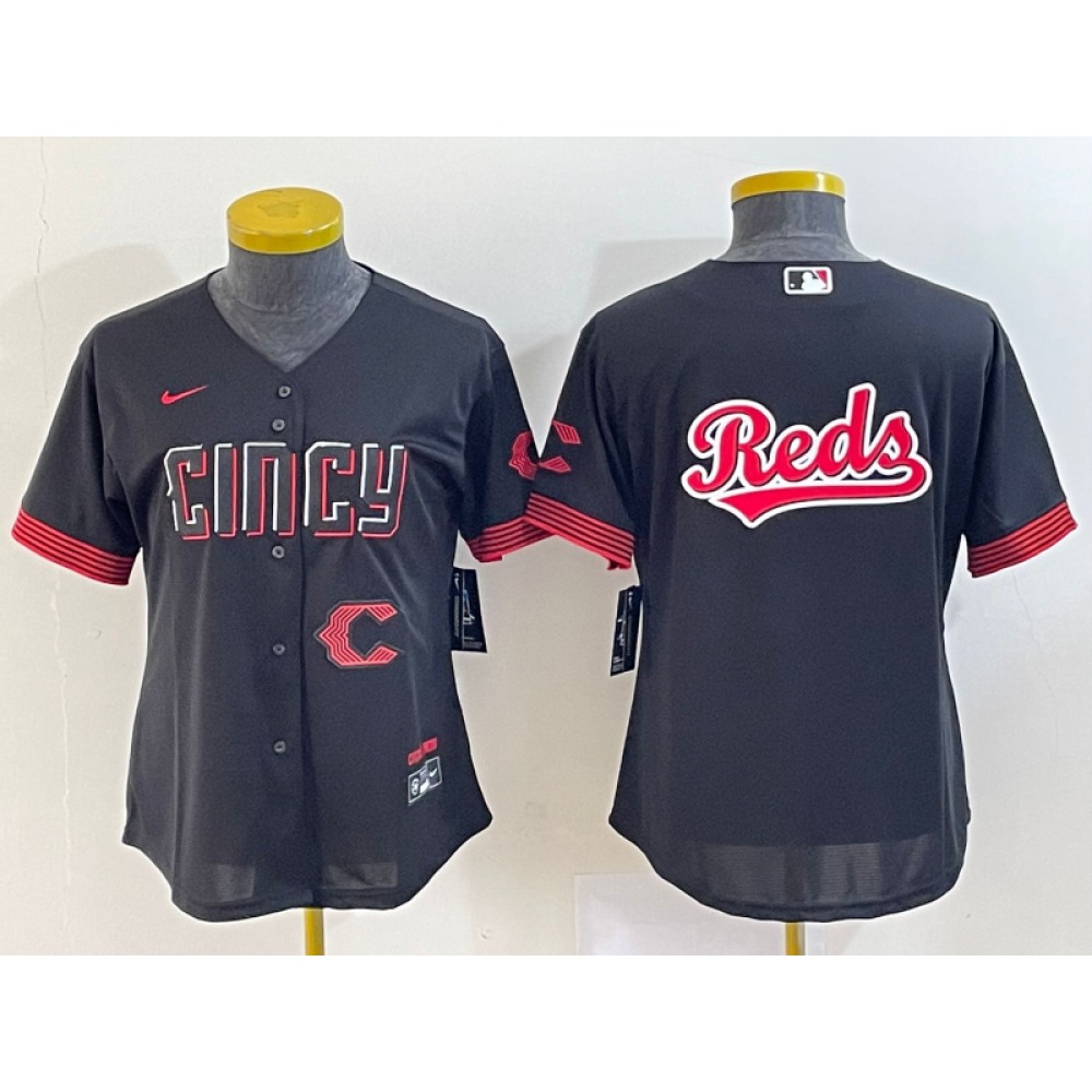 Women's Cincinnati Reds Black Team Big Logo 2023 City Connect With Patch Stitched Baseball Jersey(Run Small)