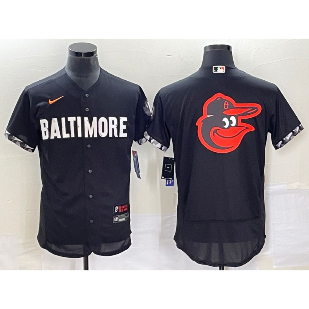 Men's Baltimore Orioles Big Logo in Back Black 2023 City Connect Flex Base Stitched Baseball Jersey