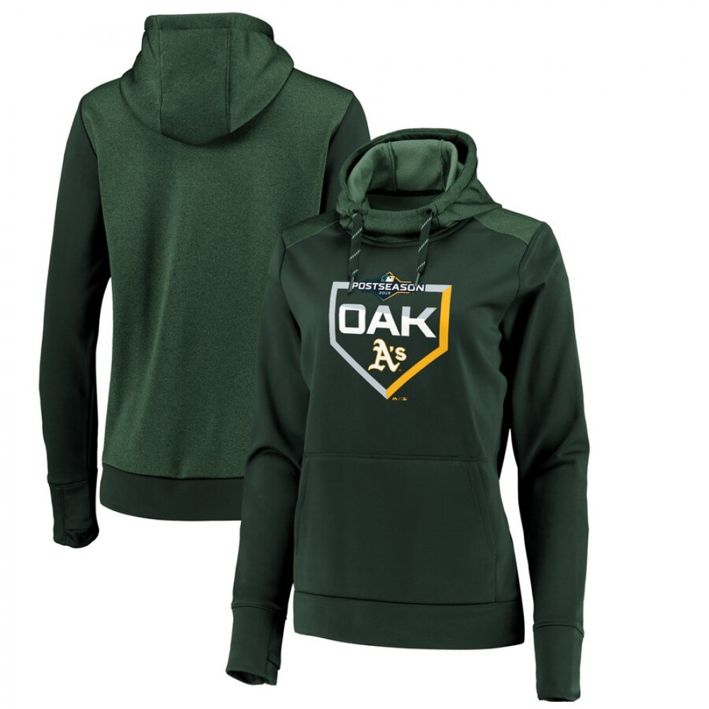 Women's Oakland Athletics Green 2019 Postseason Dugout Pullover Hoodie(Run Small)