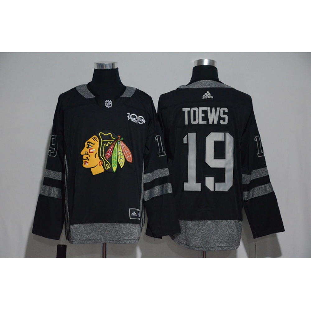 Chicago Blackhawks #19 Jonathan Toews Black Men's 1917-2017 100th Anniversary Stitched NHL Jersey