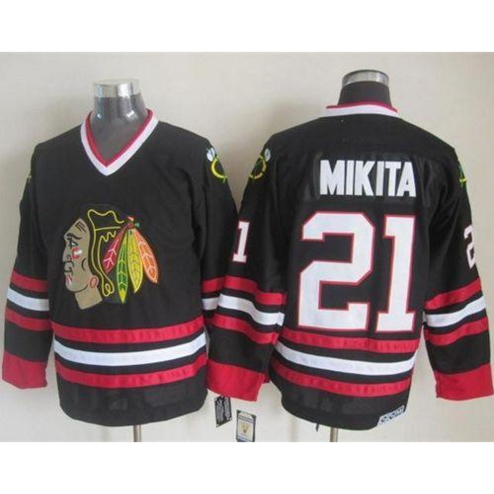 Blackhawks #21 Stan Mikita Black CCM Throwback Stitched NHL Jersey