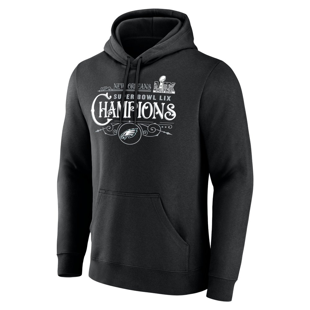 Men's Philadelphia Eagles Black Super Bowl LIX Champions Custom Name & Number Pullover Hoodie
