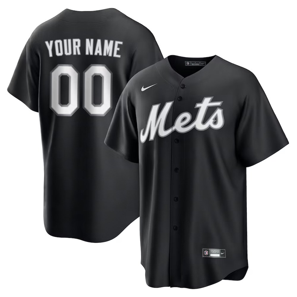 Men's New York Mets Nike Custom Black Lights Out Replica Jersey