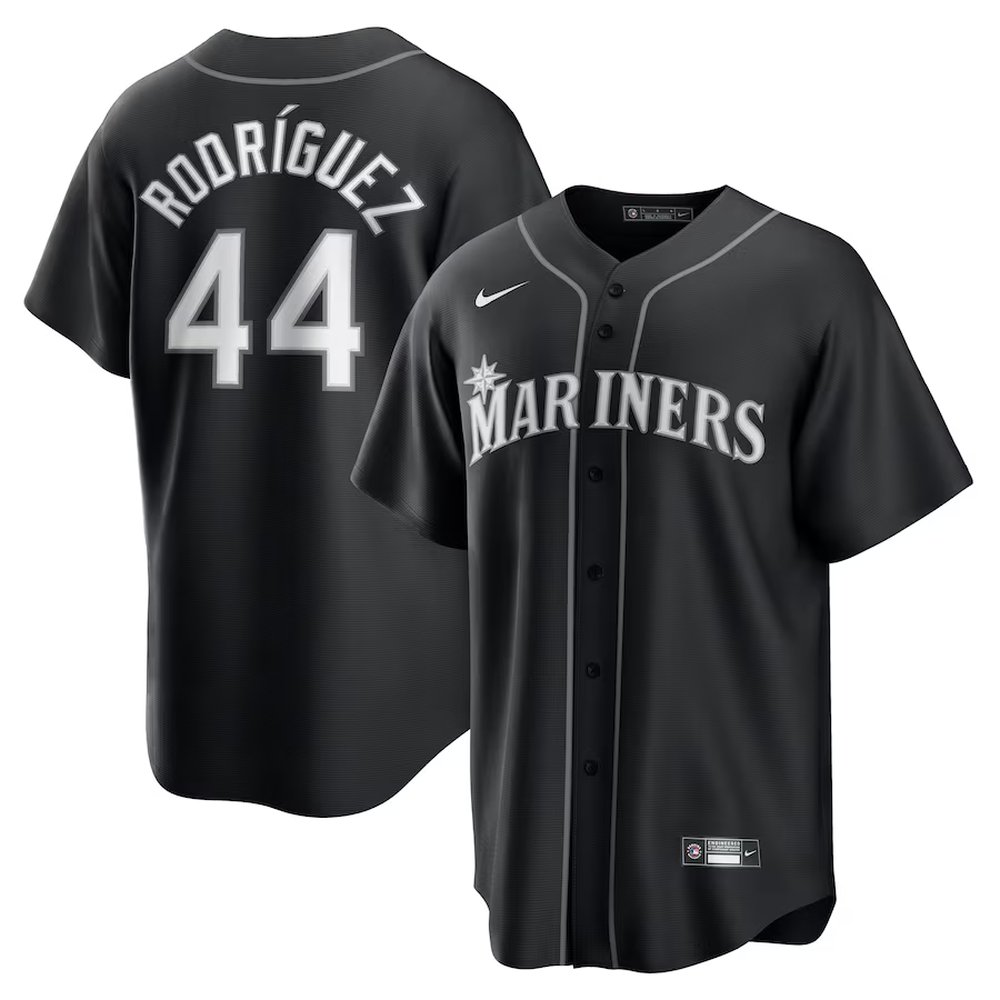 Men's Seattle Mariners #44 Julio Rodriguez Nike Black Lights Out Replica Player Jersey