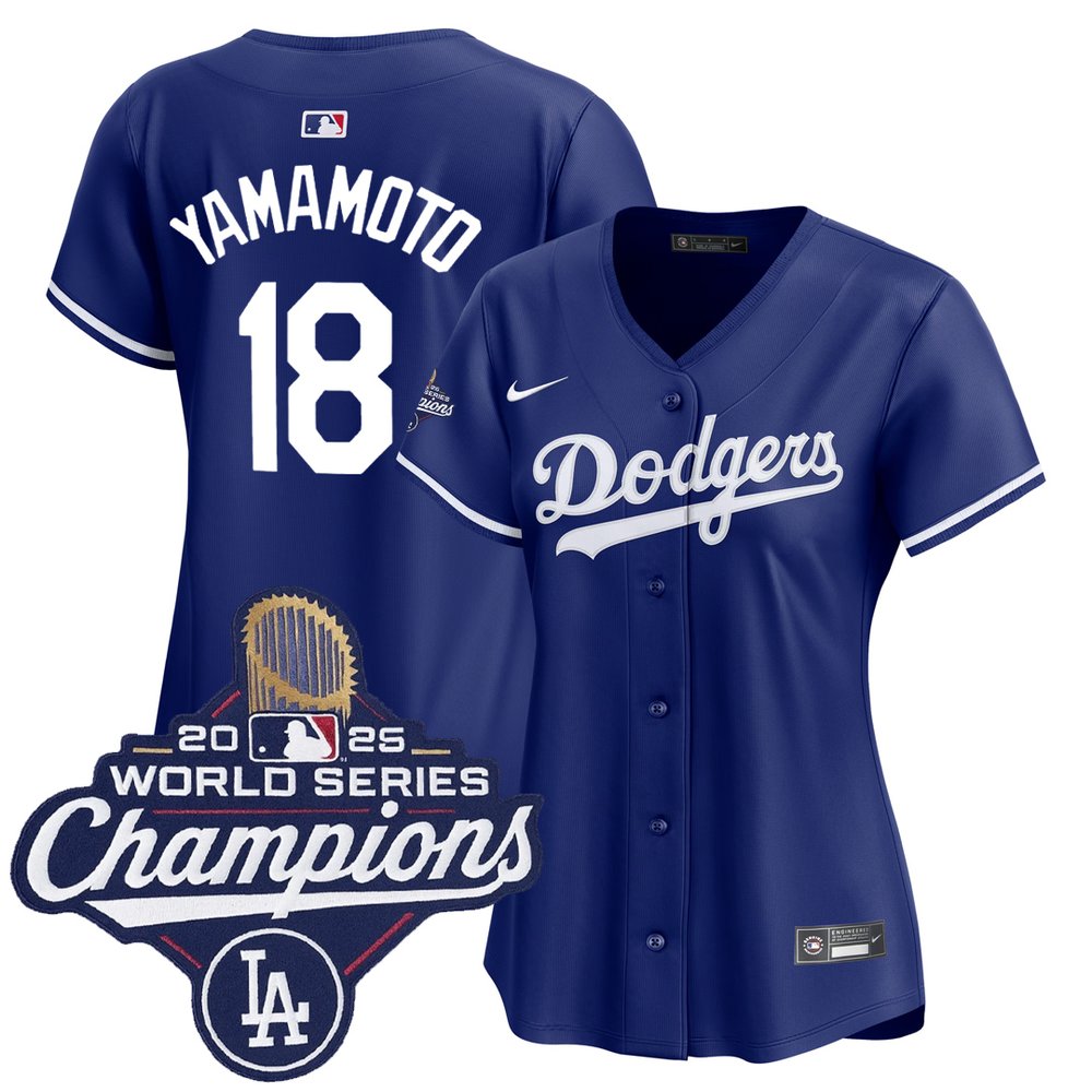 Women's Los Angeles Dodgers #18 Yoshinobu Yamamoto Nike Royal 2025 World Series Champions Home Replica Jersey