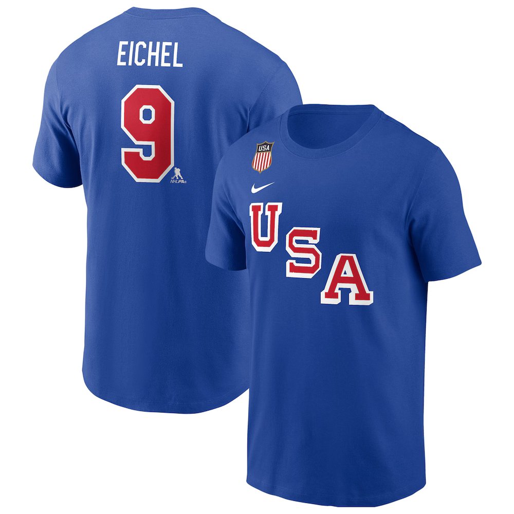 Men's 2026 US Hockey #9 Jack Eichel Royal Name & Number T-Shirt